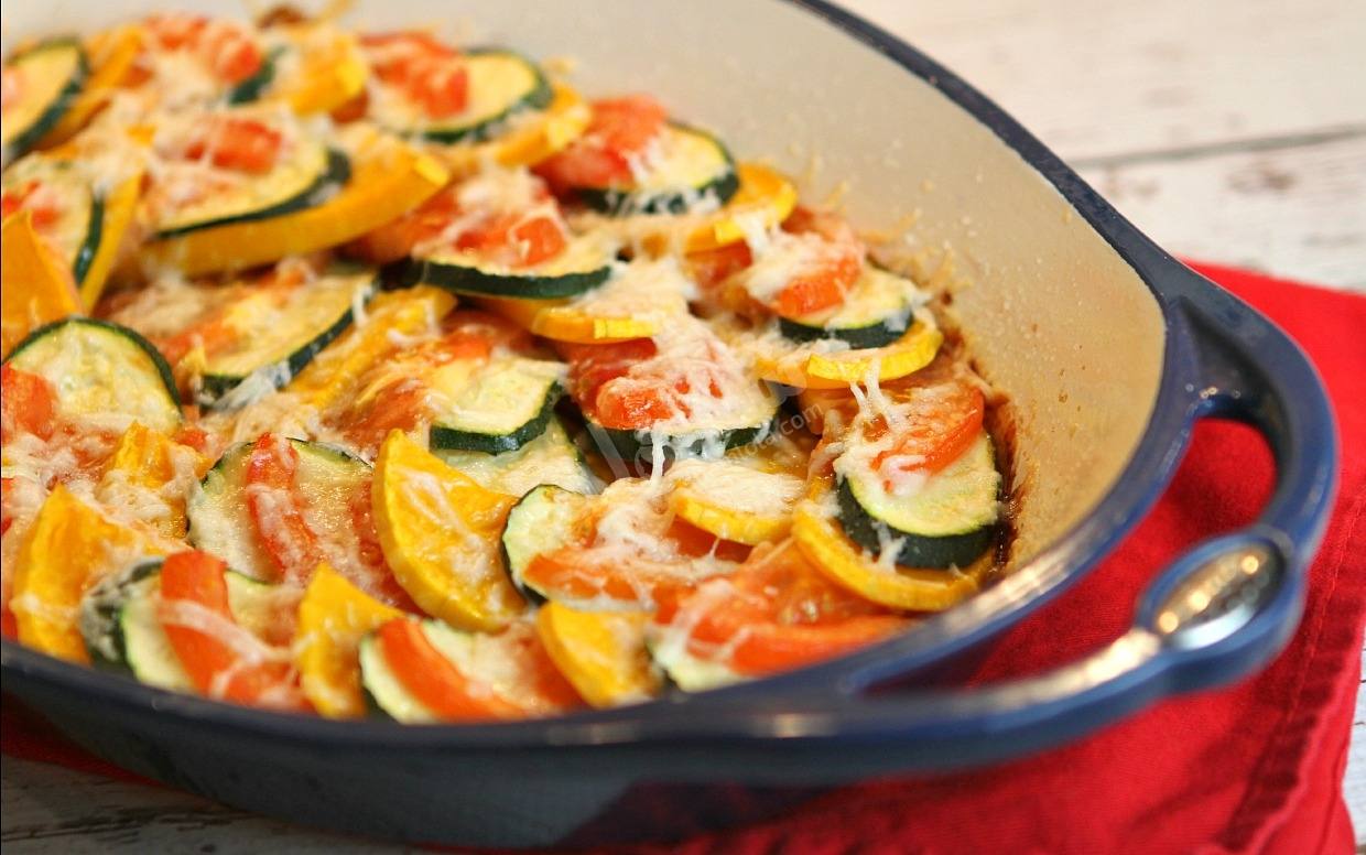 - ضعي طبقة من الكوسة ثم اضيفي رشة ملح و 2 ملعقة كبيرة جبن بارميزان.