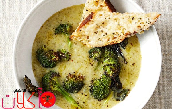 8. نقدم الشوربة مع الخبز بالجبن المحمص والبروكلي المحمّر وبرش الليمون .