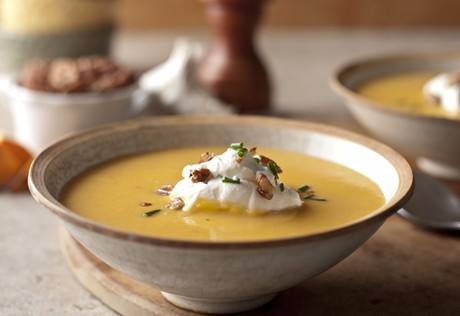 - ضعي الشوربة في بولات التقديم ثم زينيها بمزيج الثوم المعمر و الكريمة و العين جمل.