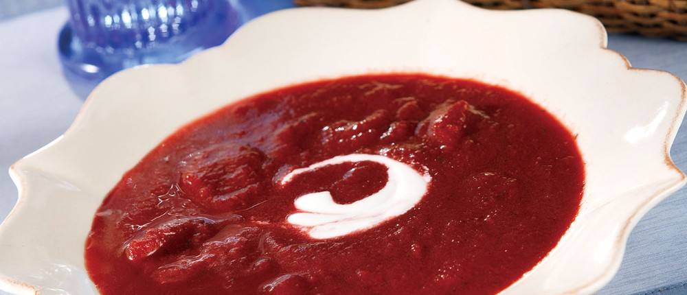 - قدمية شوربة البنجر الكريمي مع الساور كريم.