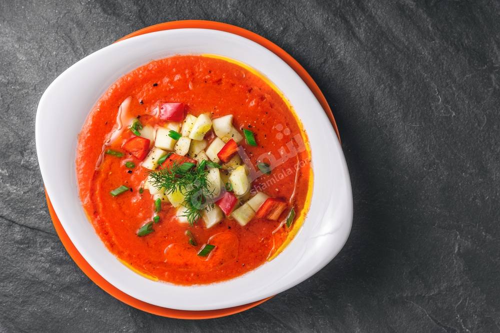 - ضعي خليط الطماطم مرة اخرى الى خليط الطماطم و الخيار و قلبي جيدا ثم غطي الإناء و اتركية في الثلاجة لمدة ساعتين ليبرد.