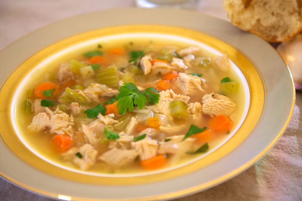 - تضاف قطع الدجاج والكرفس، وتقلب جيداً.