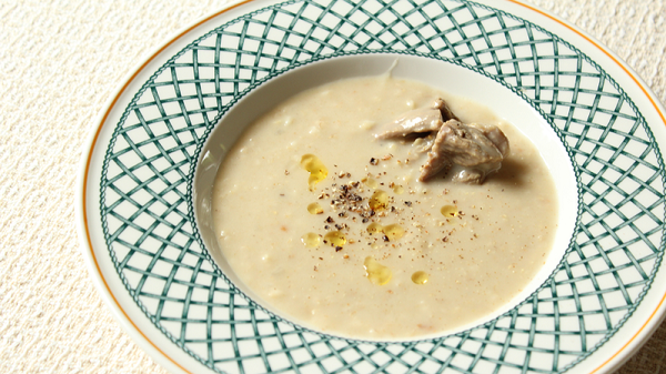 5. ضعي حساء اللحمة في طنجرة واغليه، ثم أضيفي الشوفان والفيركس عليه وغطي الوعاء، وبعد ذلك تذوقي واضبطي التوابل ومن ثم قدميه .