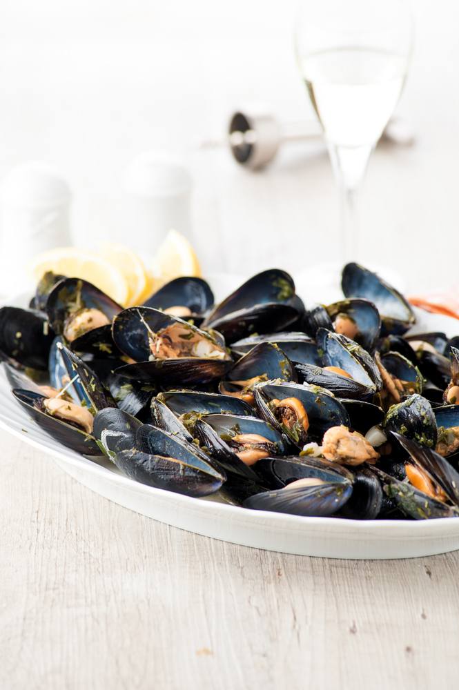 - يشطف بلح البحر جيداً ويدعك لإزالة الرمال وتزال الزوائد.