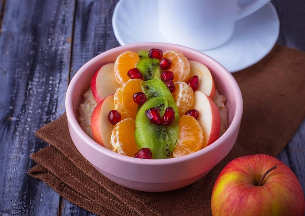 - يرص فوقه شرائح التفاح واليوسفي والكيوي.