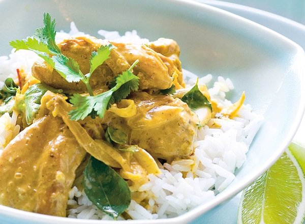 صالونة دجاج بحليب جوز الهند ، وصفة الدجاج هذه مميزة فهي تحتوي على صلصة الكاري الحمراء وحليب جوز الهند مع الأرز وعشبة الليمون الغنية بالفيتامينات ومضادات الالتهاب والاكتئاب كما تحوي خصائص مضادة للسرطان، لوصفة دجاج مفيدة بنكهات جديدة وشهية .