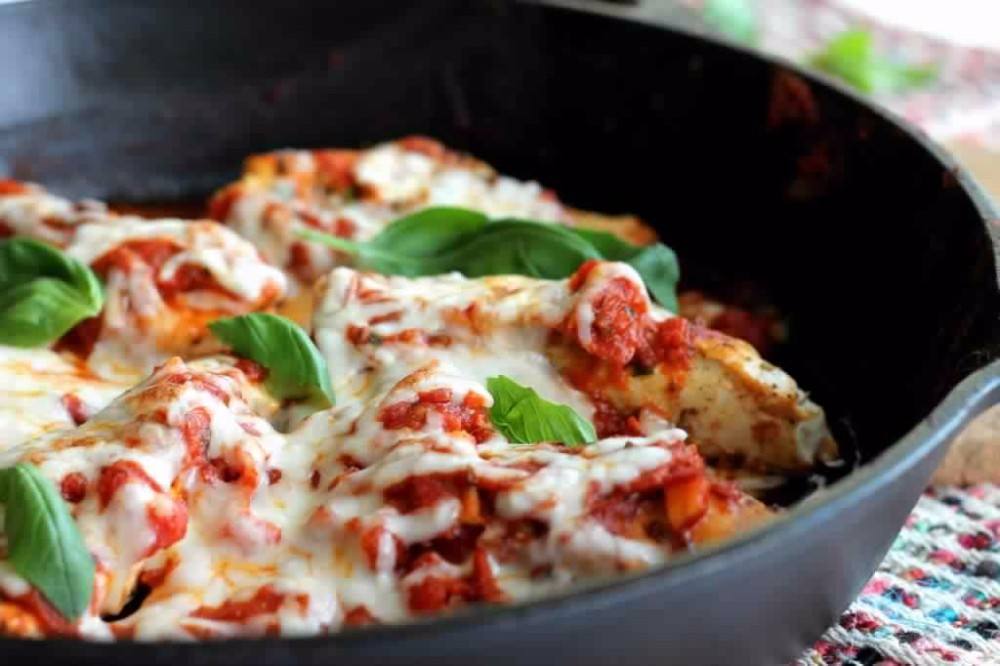 - ضعي شراح البيبروني فوق صدور الدجاج ثم ضعي مكعبات الموزاريلا.