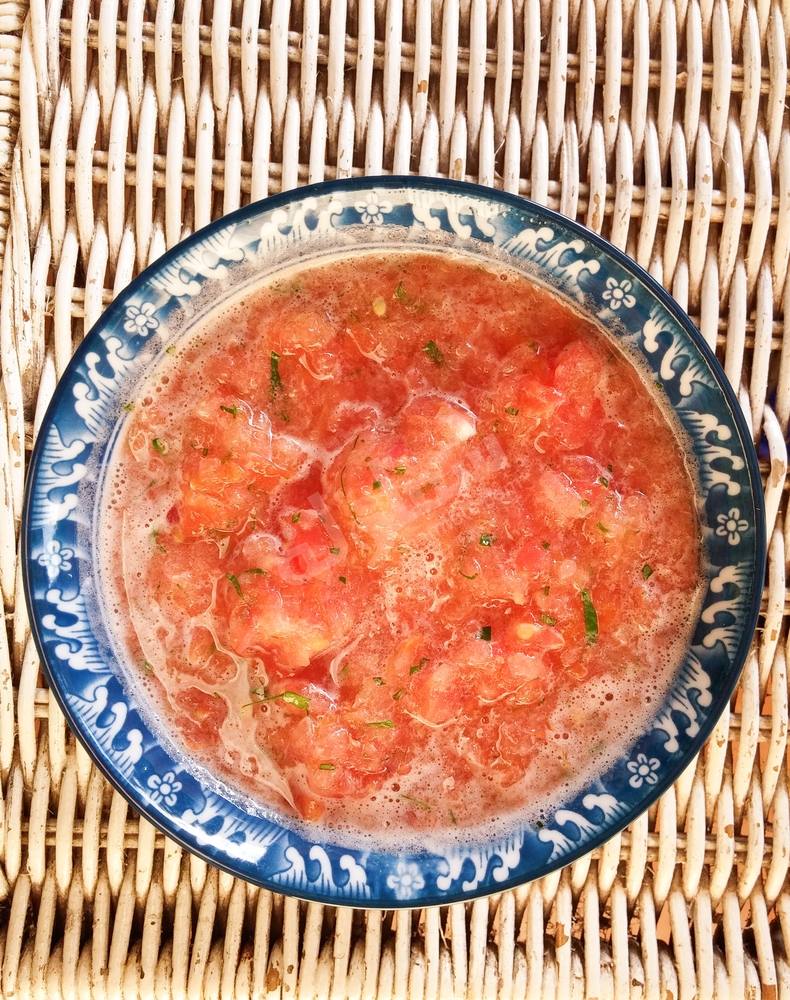 - يسخن الزيت في إناء على نار عالية ثم يضاف الثوم و يقلب لمدة 1 دقيقة في هذه الأثناء تهرس الطماطم والكزبرة في محضر الطعام و يضاف للإناء و يقلب و يضاف ماء إذا لزم الامر ليصبح صلصة رقيقة جداً .