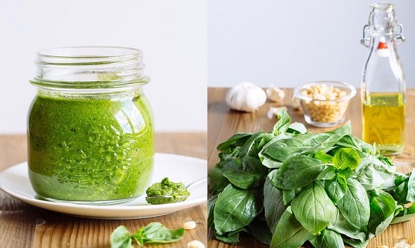 صلصة الريحان مع الصنوبر ونكهة الثوم وخليط زيت الزيتون وعصير الليمون، هي صلصة مميزة لا يمكن أن نتخيل طعمتها القوية والزكية بالسلطة، ويمكنك تجميدها بالثلاجة كمكعبات مخصصة للنكهة أثناء تحضير الشوربة بالخضار .