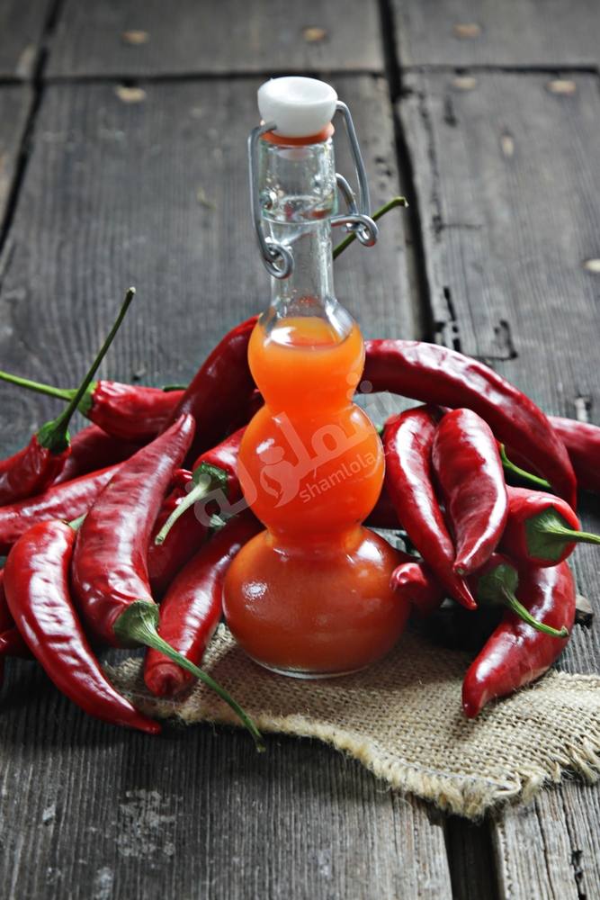- يتبل بالملح إذا لزم الأمر و هذا يعتمد على حرارة الفلفل ثم يصفى الخليط من خلال منخل ناعم ثم ينقل لبرطمان سعة 1/2 لتر معقم و يحكم غلقه و يترك لينقع لمدة 2 أسبوع على الأقل قبل الإستخدام .