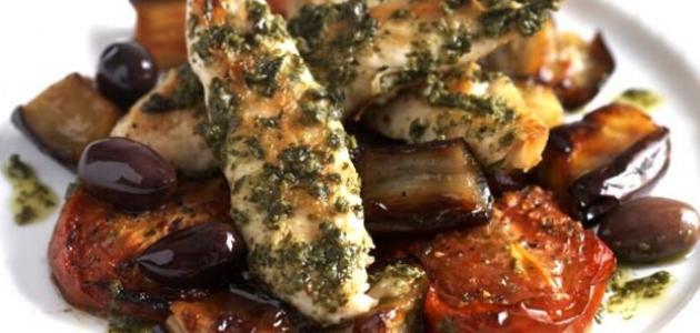 - وضع الدجاج المقطع إلى قطع متوسطة الحجم في صينية خاصة بالفرن.