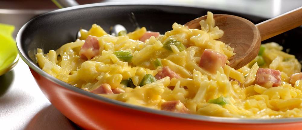 - قدمي صينية البيكون بالجبن و البصل ساخنة.