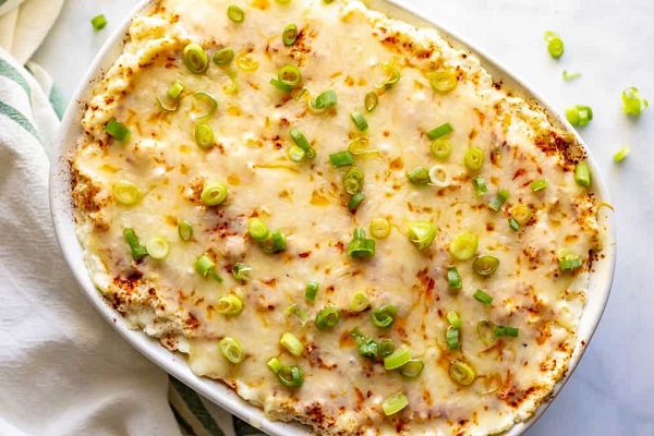 صينية قرنبيط بالخضار من الوصفات السهلة التي يمكن تحضيرها بالفرن فهي عبارة عن قرنبيط مهروس وخضار مشوحة بالزيت وبرش الشيدر طبق شهي وسريع .