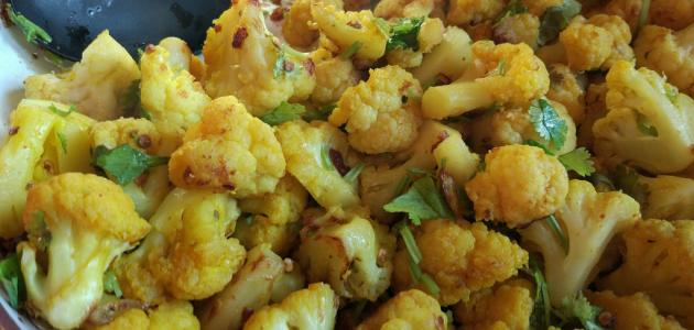 • تحمير القرنبيط في الزيت إلى أن يكتسب اللون الذهبي، ثمَّ تصفيته.