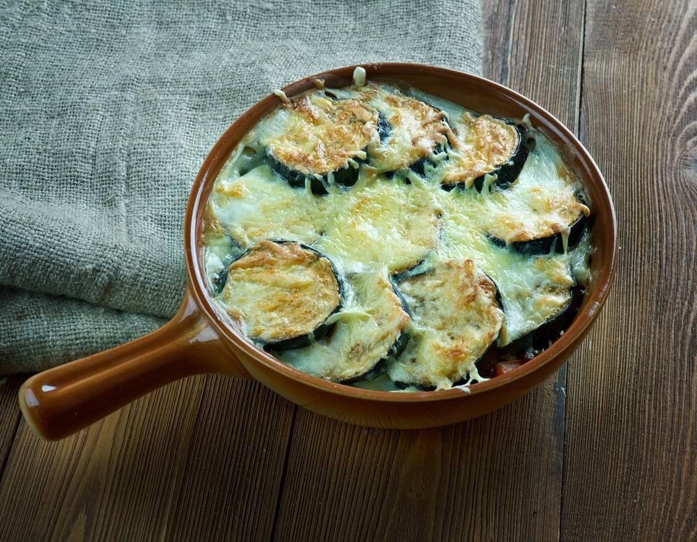 - تكرر العملية حتى انتهاء الكمية لتصبح طبقة من الباذنجان وأخرى من اللحمة.