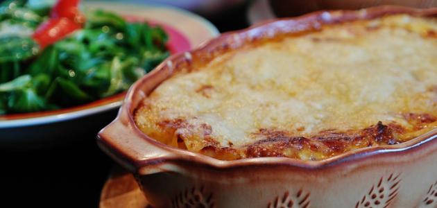 - وضع الخليط في الصينية المحضرة، ثمَّ توزيع الجبن فوقه.