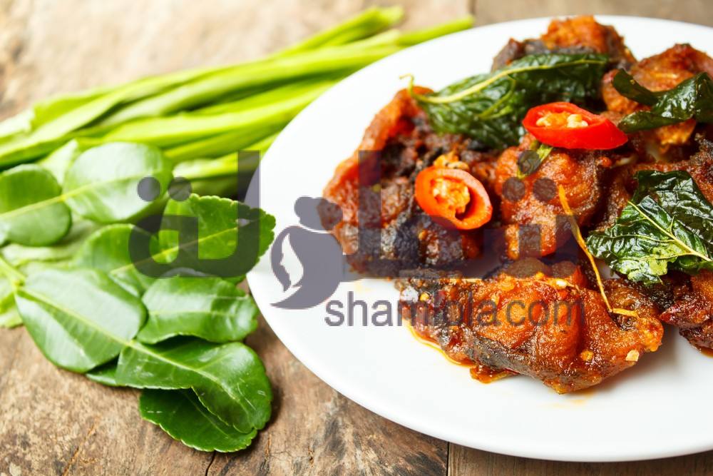 نحضر القراميط و نقطعها قطع متوسطة و نحشيها بخلطة الثوم مع الكمون و الشطة و نتبلها من الخارج .