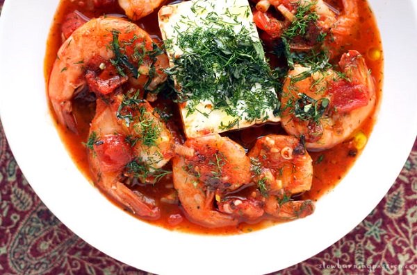طاجن الجمبري بالطماطم ، طبق يوناني بالفرن مع صوص الطماطم وجبنة فيتا. طبق سهل وسريع، ويمكن تقديمه مع الأرز وبعض الخبز المقرمش نكهته رائعة و مفيد للجسم .