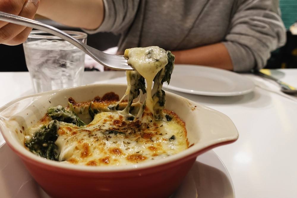 - قدمي طاجن السبانخ و الخرشوف بالجبن الموزاريلا مع رقائق التورتيلا المحمصة.