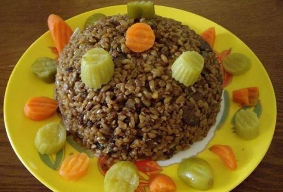- ثم ضعى معاه الكبد والقوانص والبهارات والفلفل الأسمر والفلفل الرومى المقطع مع التقليب .