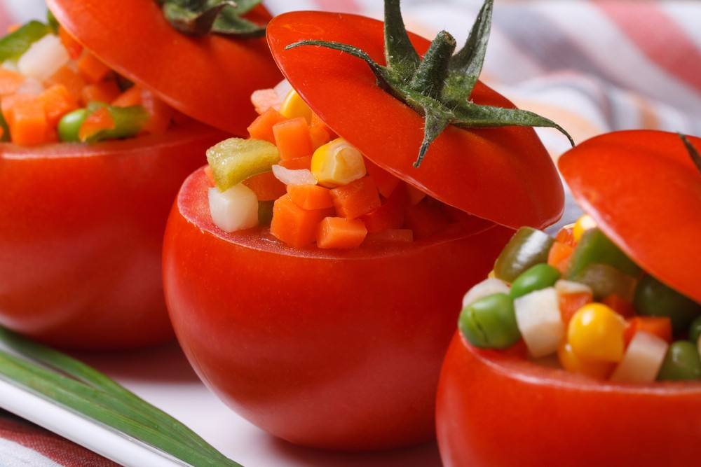 - تغسل الطماطم جيدا، ويقطع الجزء العلوي منها.