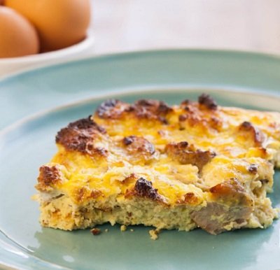 عجة البيض بالسجق طبق بالفرن سهل التحضير، ومغذي يحتوي على نسبة كبيرة من البروتين، يتكون من البيض، سجق الدجاج، الحليب، الجبنة مع شرائح الخبز بدقيق جوز الهند.