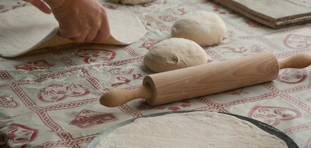 - تقليب العجينة على طاولة مرشوشة بالطحين، ونقل العجينة إلى وعاء مدهون بالزيت حتى تتخمر لمدة ساعتين.