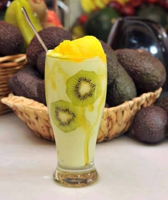 - يُصب عصير الأفوكادو في كأس التقديم، ويُزين بالآيس كريم.