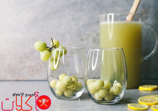 - نجمع عصير العنب مع السكر والليمون، ونتركه 10 دقائق حتى يتشرب السائل السكر، ثم ننقله لنار متوسطة، حتى الغليان