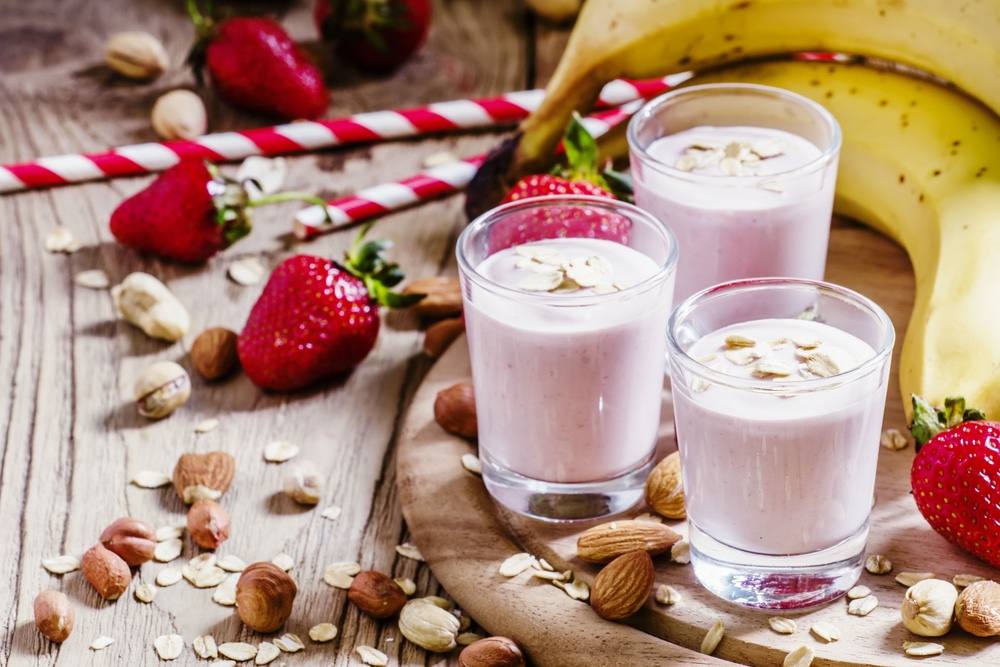 - اضيفي اللبن تدريجيا على قطع الفراولة و اخلطي المكونات جيدا.