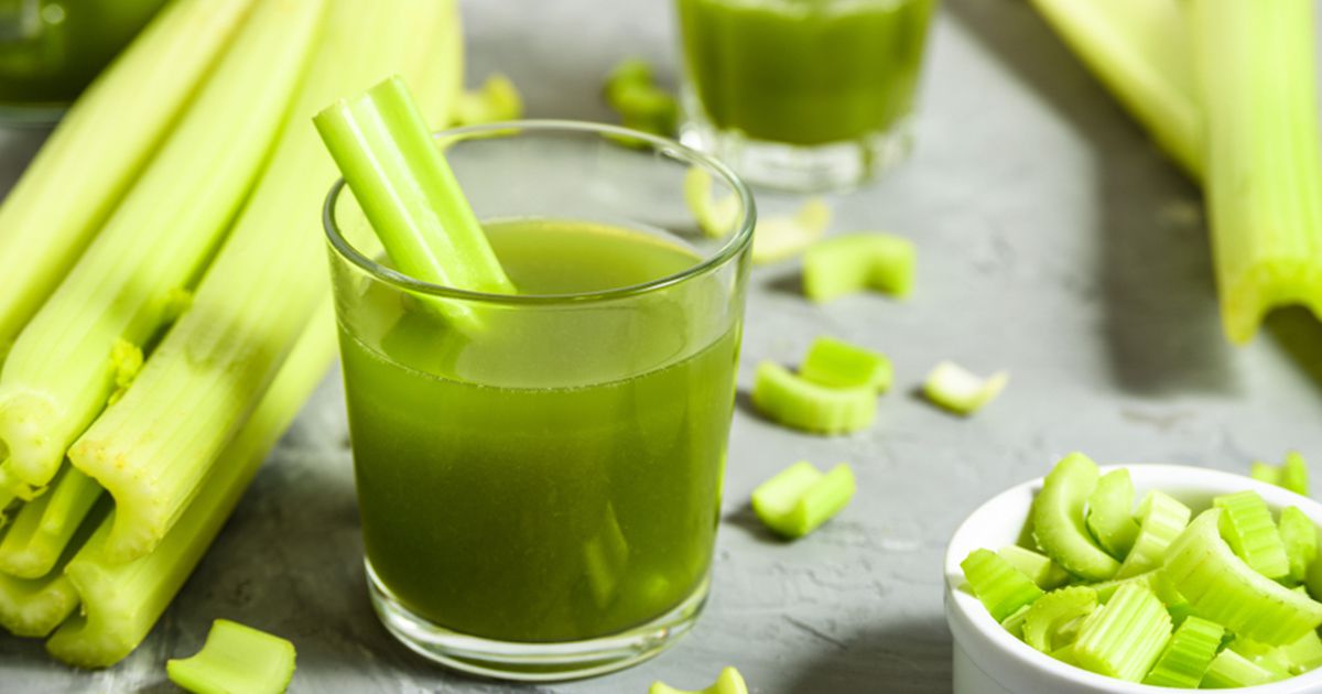 1- في العصارة الكهربائية، ضعي الكرفس، خيار والتفاح الخضر. أعصري المكونات حتى تحصلي على مزيج ناعم ومتجانس.