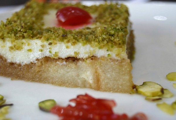 - نسكب المزيج فوق الخبز في الطبق ونرش الفستق ثم نضع الطبق في البراد حتى تتماسك المكونات وتصبح جاهزة للتقديم .