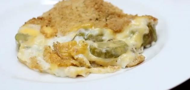 - إدخال الصينية إلى فرنٍ ساخنٍ درجة حرارته 256 درجةً مئويةٍ، مدَّة تتراوح من ثلث ساعةٍ إلى نصف ساعةٍ، أو بحسم نوع الفرن، وترك الصينية في الفرن حتى يصبح المزيج متماسكًا وذهبيًا، ثمَّ إخراج الصينية من الفرن وتقديم الطبق.