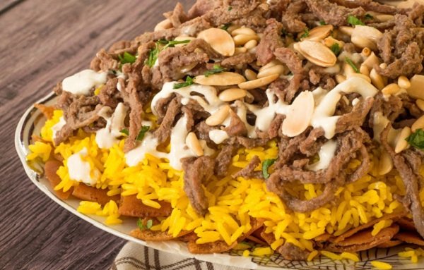 فتة اللحم بالزبادي