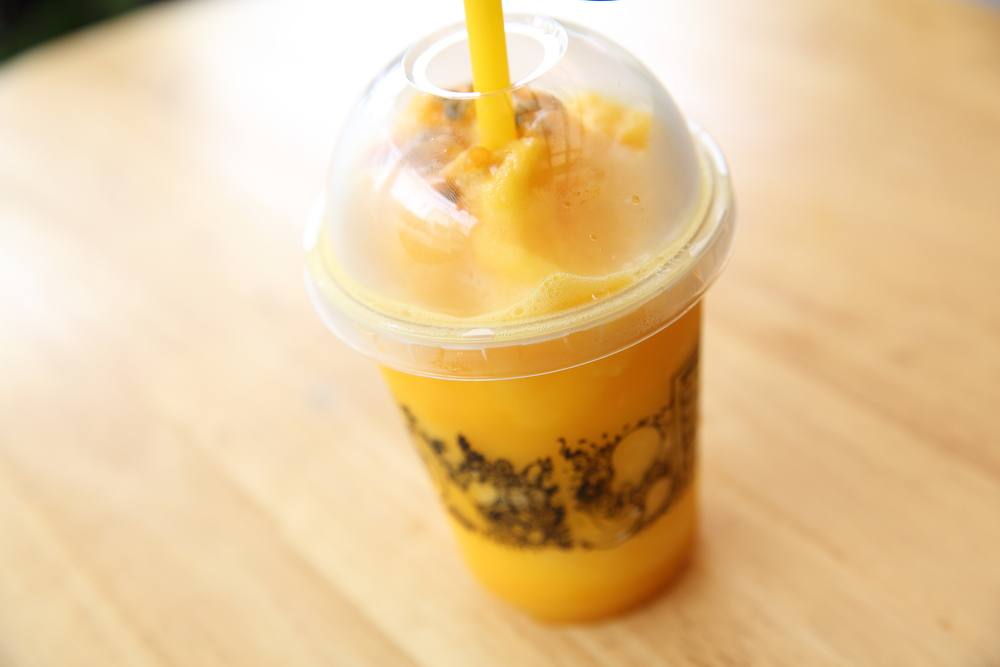 1. في خلاط كهربائي يخفق الثلج مع المانجو والسكر حتى يصبح خليط كثيف أملس.