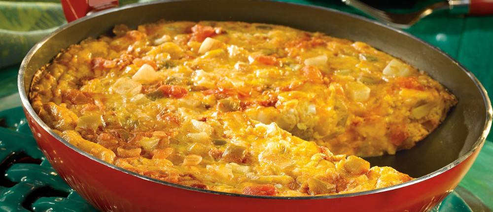 - ضعي مزيج البيض على البطاطس و قلبي لمدة 3 دقائق حتى ينضج المزيج.