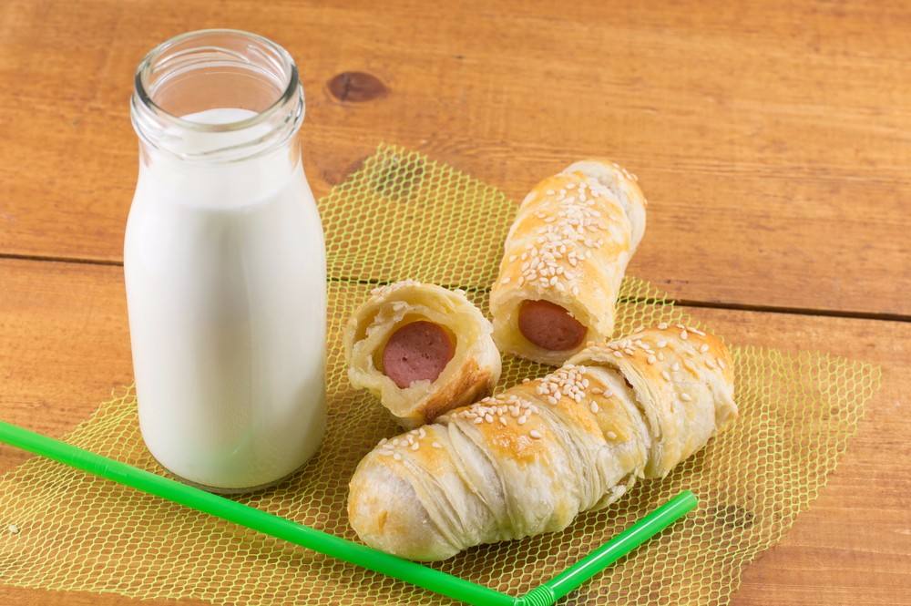 - يوضع الهوت دوج على طرف العجينة، وتلف عليه.