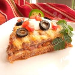 - ضعي خبز التورتيللا فوق خليط اللحم في الصينية ثم ضعي كمية من خليط اللحم فوق خبز التورتيللا ثم ضعي طبقة من جبن الموزاريللا المبشور فوقه.