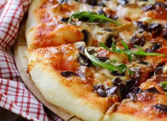 - نرش الزيت و نضيف الفطر والفلفل والذرة و الزيتون والجبنة ونعيدها الى الفرن مدة عشر دقائق أو حتى تذوب الجبنة.