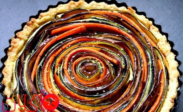9. نرتب الكوسا والجزر والباذنجان بشكل متناوب، على شكل دوامة