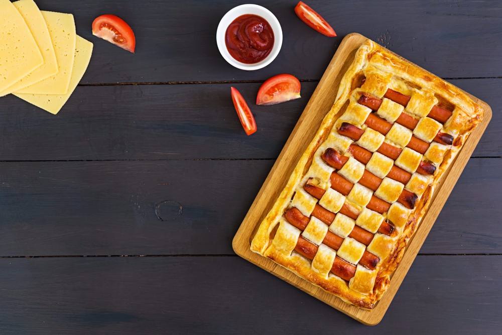 - تقطع قطعة الباف باستري الثانية لشرائط طويلة ولكن دون الوصل للنهاية.