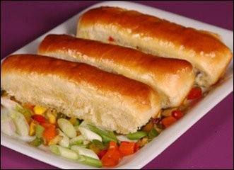 - يُقسم العجين إلى كُرات صغيرة و تُفرد كل كرة على سطح مرشوش بقليل من الدقيق على شكل مستطيل و يُوضع كمية مناسبة من الحشو على أحد طرفيَ العجين و تُرش الجبنة الموتزاريلا مع الحشو ، وتُقفل الجوانب و يٌلف على هيئة أسطوانة و تُرص في صينية مدهونة بقليل من الزيت.