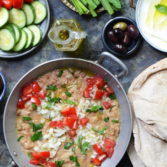 فول مدمس مطحون طبق شعبي مصري ، مكون من مهروس حبوب الفول ((المعلبة)) ومضافاً إليها الثوم وعصير الليمون وزيت الزيتون ، هذه الوصفة تقدم على الفطور أو كمقبلات . وهي تقليدية وشهية وعربية بامتياز ، ويمكن استخدام الفول المعلب او الفول اليابس بعد نقعه وسلقه .