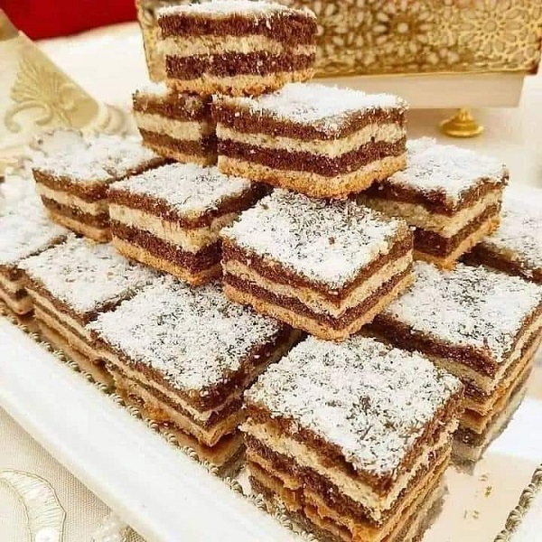 قاطو طبقات جزائري عبارة عن طبقات عجين من الفانيليا والكاكاو على الطريقة الجزائرية وهو حلى هش ولذيذ يذوب في الفم ذوبان ومذاقه وشكله شهي للغاية .