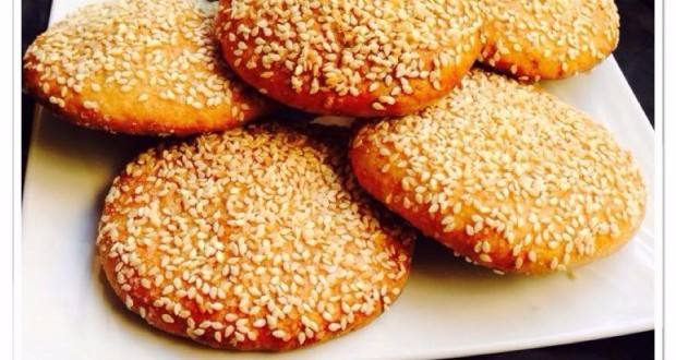 - خذى كل كورة واحشيها سكر وقرفة وكوريها واغمسيها فى السمسم وبططيها بسيط ورصيها فى الصاج واتركيها ترتاح مرة أخرى لمدى 20 دقيقة.
