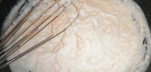 - نضع القشطة بعد ذلك على الحليب ويتم التحريك المستمر حتى يصبح الحليب دافئ.