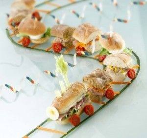 - تقسم كل الساندويتشات إلى قطع بطول 4 سم.