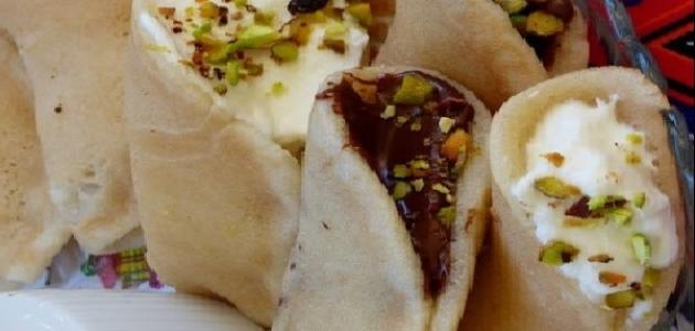 - قفل كل دائرة من دوائر العجين “القطايف” من طرف واحد، وذلك بالضغط على أطرافها بالأصابع، ثمّ حشو الطرف الثاني المفتوح من دائرة القطايف، ووضع كمية مناسبة من الشوكولاتة باستخدام ملعقة.