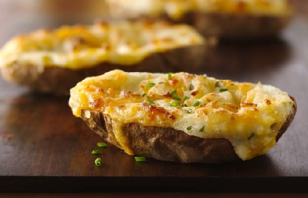 قوارب البطاطس المحشيه في الفرن ، طبق جانبي رائع وشهي من البطاطا المحمصة بالفرن والمحفورة والمحشوة بخليط من لب البطاطا، الجبنة، كريمة الجبنة، الساور كريم، الثوم والفلفل مع رشات ملح حسب الرغبة.