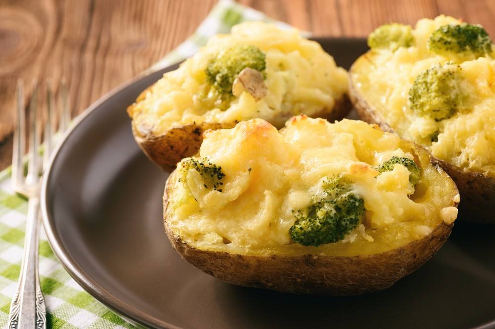 - يخرج البطاطس من الفرن، ويفرغ منتصفها، ويوضع ما تم تفريغه في بولة.